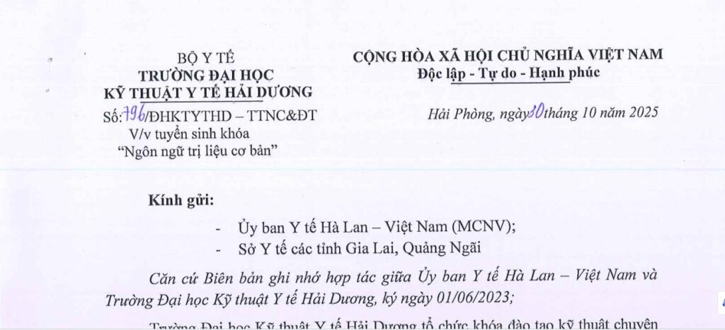 Trung tâm Nghiên cứu và Đào tạo theo nhu cầu xã hội – Trường Đại học Kỹ thuật Y tế Hải Dương. Số 1 Vũ Hựu, phường Lê Thanh Nghị, thành phổ Hải Phòng