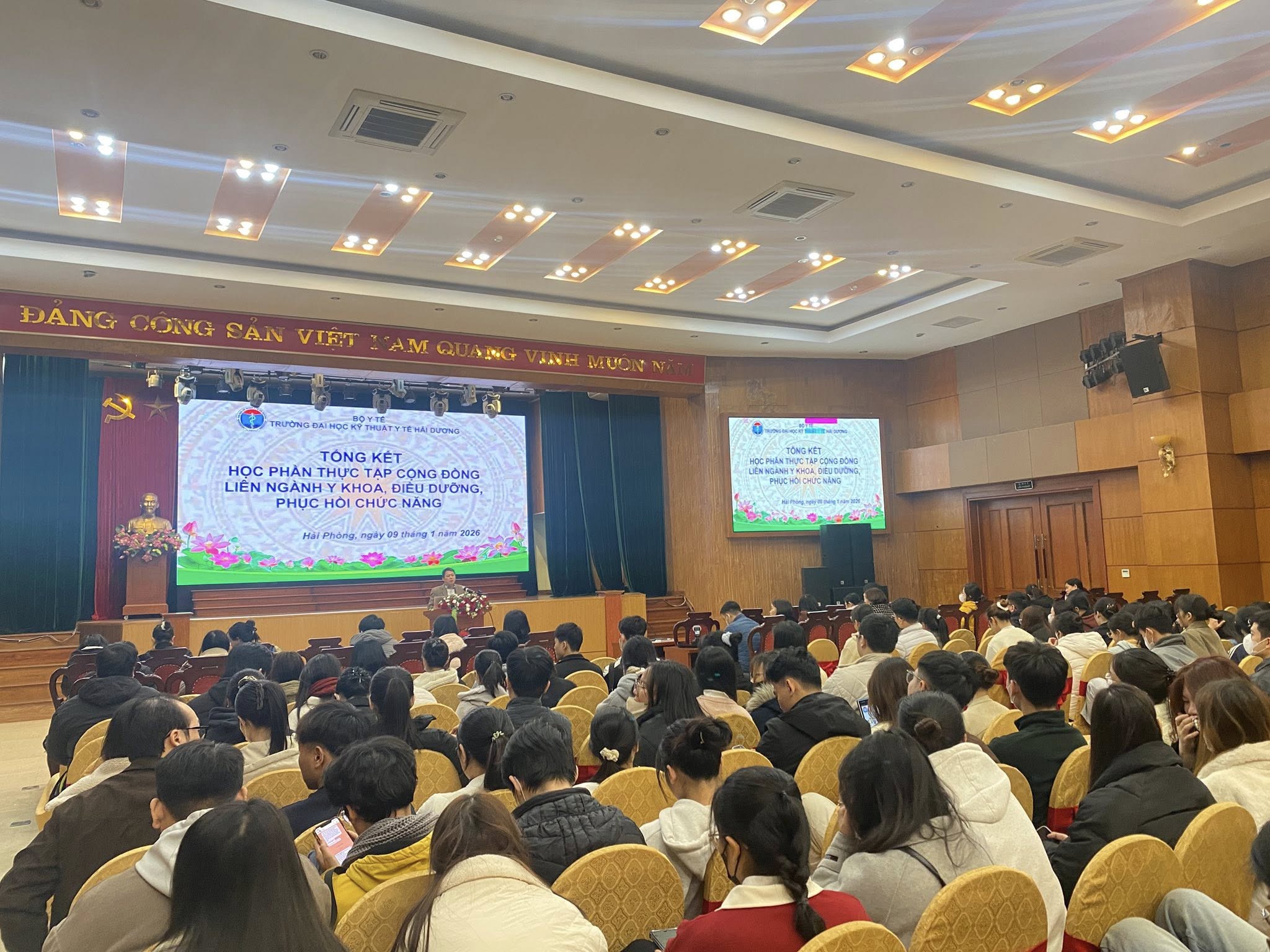 Ngày 09/01/2026, Trường Đại học Kỹ thuật Y tế Hải Dương đã long trọng tổ chức Hội nghị tổng kết thực tập cộng đồng dành cho sinh viên các ngành Điều dưỡng đa khoa, Y khoa và Vật lý trị liệu – Phục hồi chức năng.