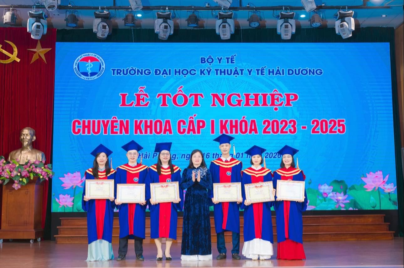Ngày 16/01/2026, Trường Đại học Kỹ thuật Y tế Hải Dương đã long trọng tổ chức Lễ tốt nghiệp và trao bằng Chuyên khoa cấp I khóa 2023–2025 cho 4 chuyên ngành: Nội khoa, Điều dưỡng, Phục hồi chức năng và Xét nghiệm.