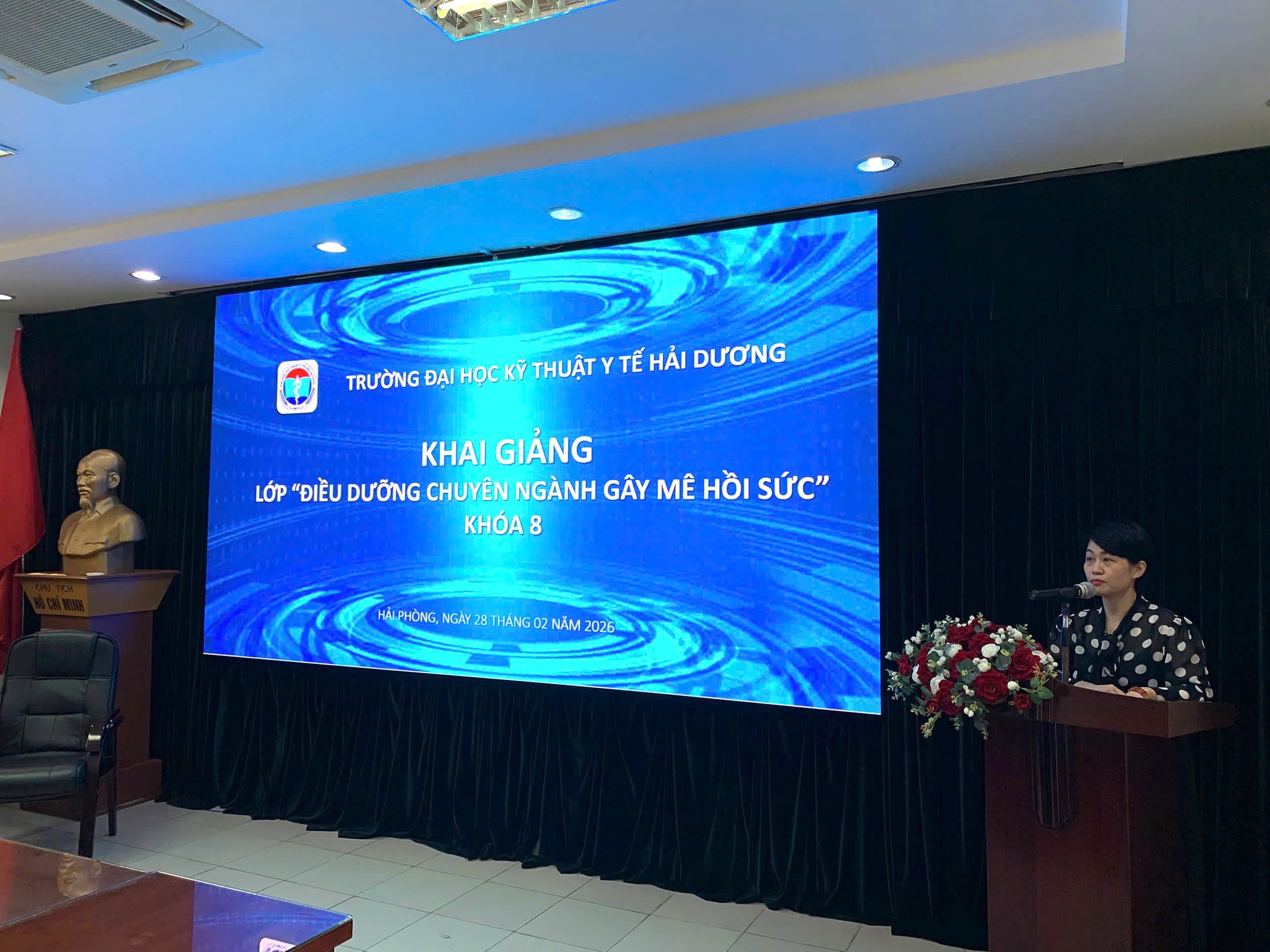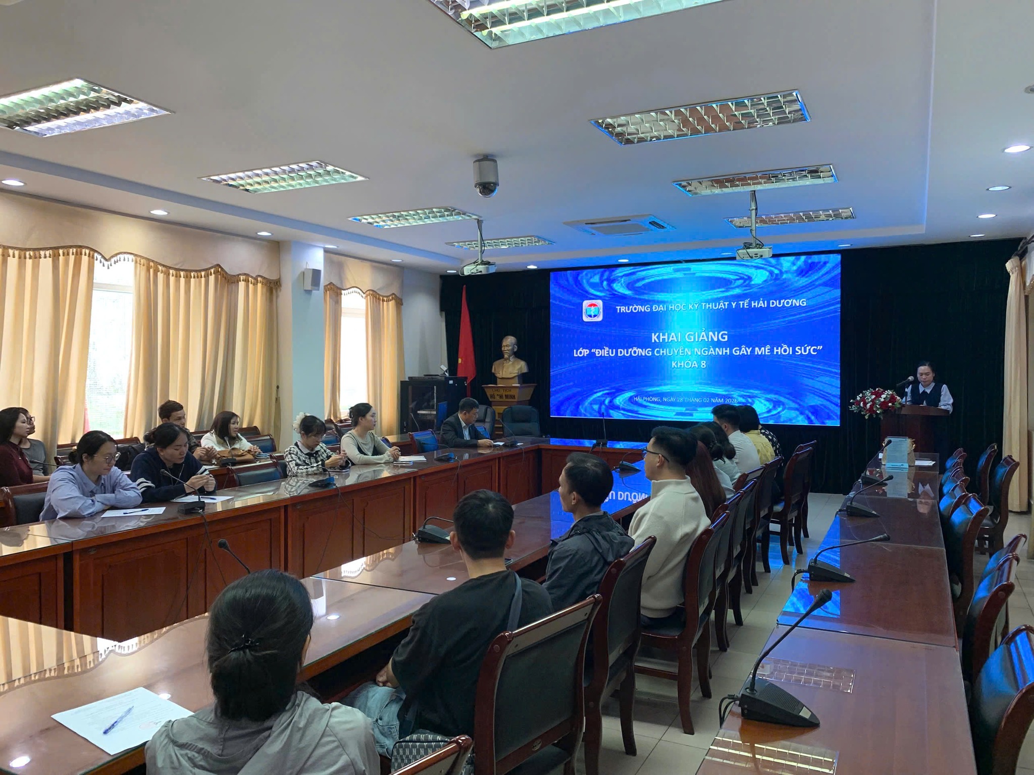 Ngày 28/02/2026 Trường Đại học Kỹ thuật Y tế Hải Dương tổ chức khai giảng lớp Điều dưỡng chuyên ngành Gây mê Hồi sức. Tham dự lễ khai giảng có:
