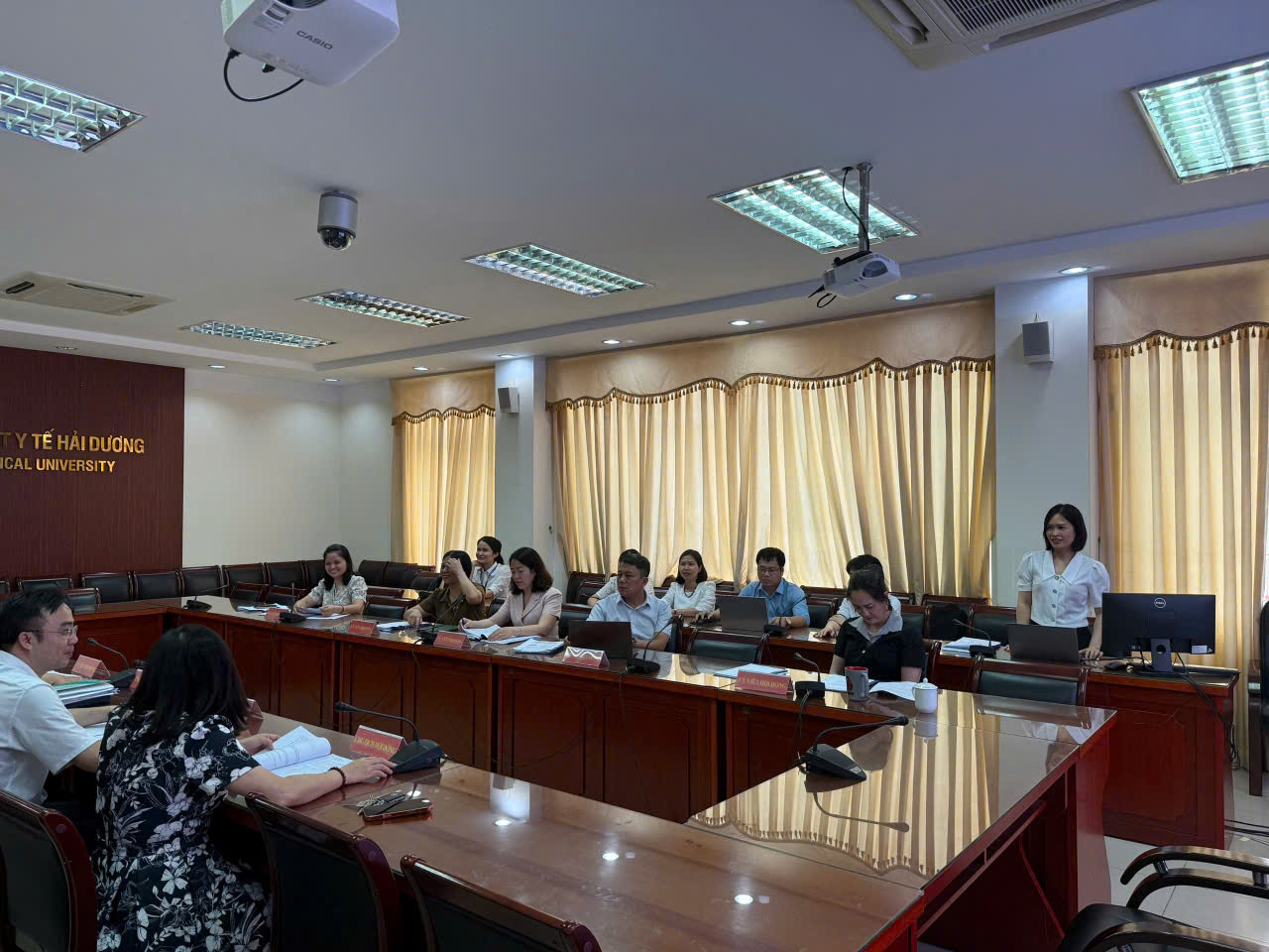 Trong thời gian từ tháng 12/2025 đến tháng 03/2026, Trường Đại học Kỹ thuật Y tế Hải Dương đã tham gia Dự án “Quản lý và giám sát hiệu quả công việc ứng dụng trí tuệ nhân tạo”, thuộc khuôn khổ Dự án “Ứng dụng trí tuệ nhân tạo trong quản lý đảm bảo chất lượng giáo dục đại học tại Việt Nam”. Để nghiệm thu kết quả dự án ngày 14/04/2026, Nhà trường đã tổ chức Hội đồng nghiệm thu do TS.BS. Phạm Thị Cẩm Hưng – Hiệu trưởng Nhà trường làm Chủ tịch, cùng sự tham gia của Lãnh đạo Trường và đại diện cán bộ quản lý trong Nhà trường.