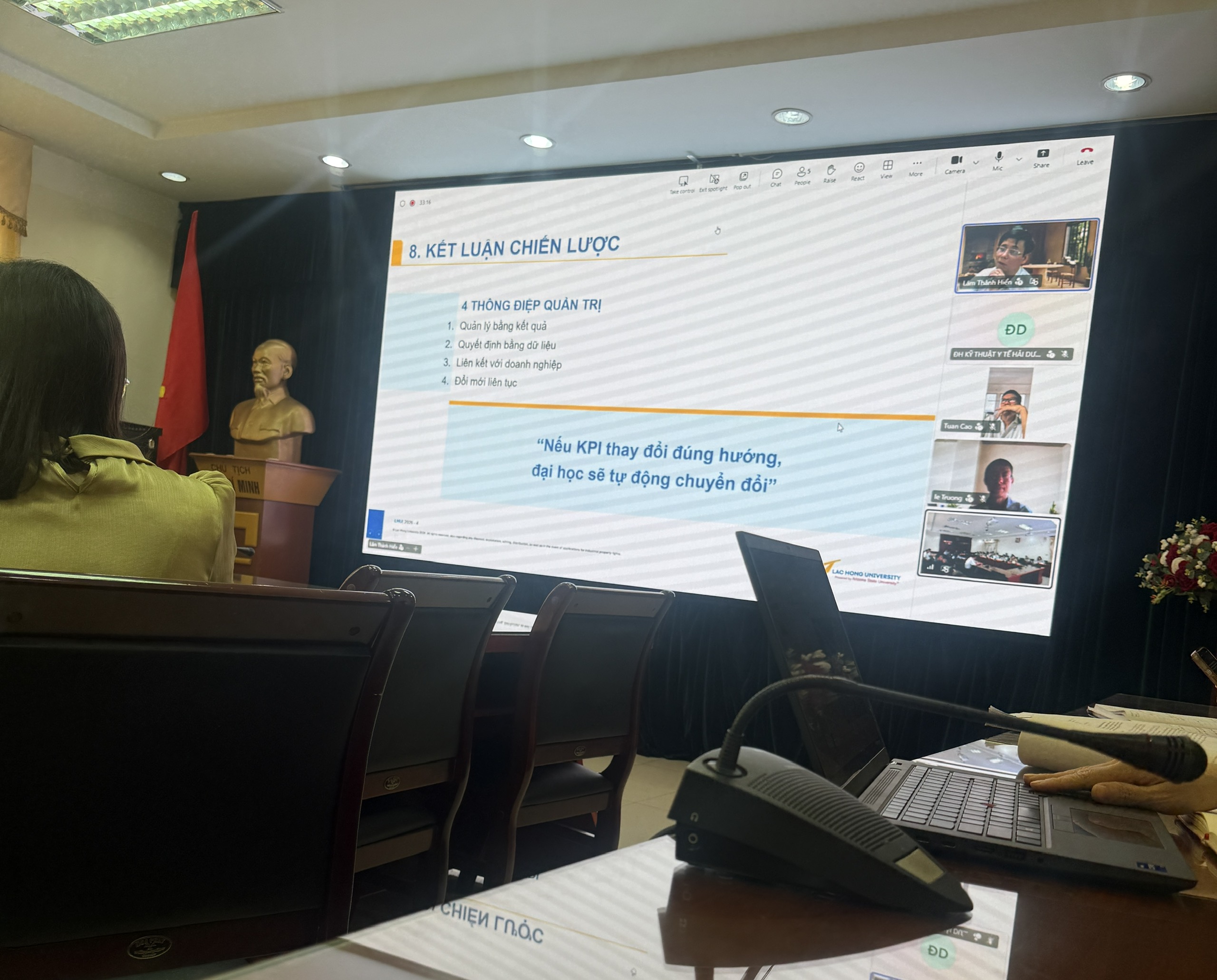 Cùng với các hoạt động triển khai xây dựng “Chiến lược phát triển giai đoạn 2026–2031, tầm nhìn đến năm 2045” đã phối hợp với Trường Đại học Lạc Hồng tổ chức buổi chia sẻ kinh nghiệm “Xây dựng, triển khai chiến lược phát triển giáo dục đại học đổi mới, sáng tạo, phát triển bền vững”. Tại buổi làm việc, các chuyên gia đã chia sẻ về mô hình “Quản trị dựa trên kết quả” (Results – Based Management – RBM) và công cụ “Thẻ điểm cân bằng” (Balanced Scorecard – BSC); cách thức thiết lập chuỗi logic chiến lược và bộ chỉ số đo lường (KPI) dựa trên bốn trụ cột: tài chính, người học, quy trình nội bộ và năng lực tổ chức. Đây là nền tảng quan trọng giúp Nhà trường chuyển đổi sang tư duy quản trị bằng dữ liệu, đảm bảo mọi hành động đều gắn liền với kết quả đầu ra và có thể định lượng chính xác hiệu quả thực thi.